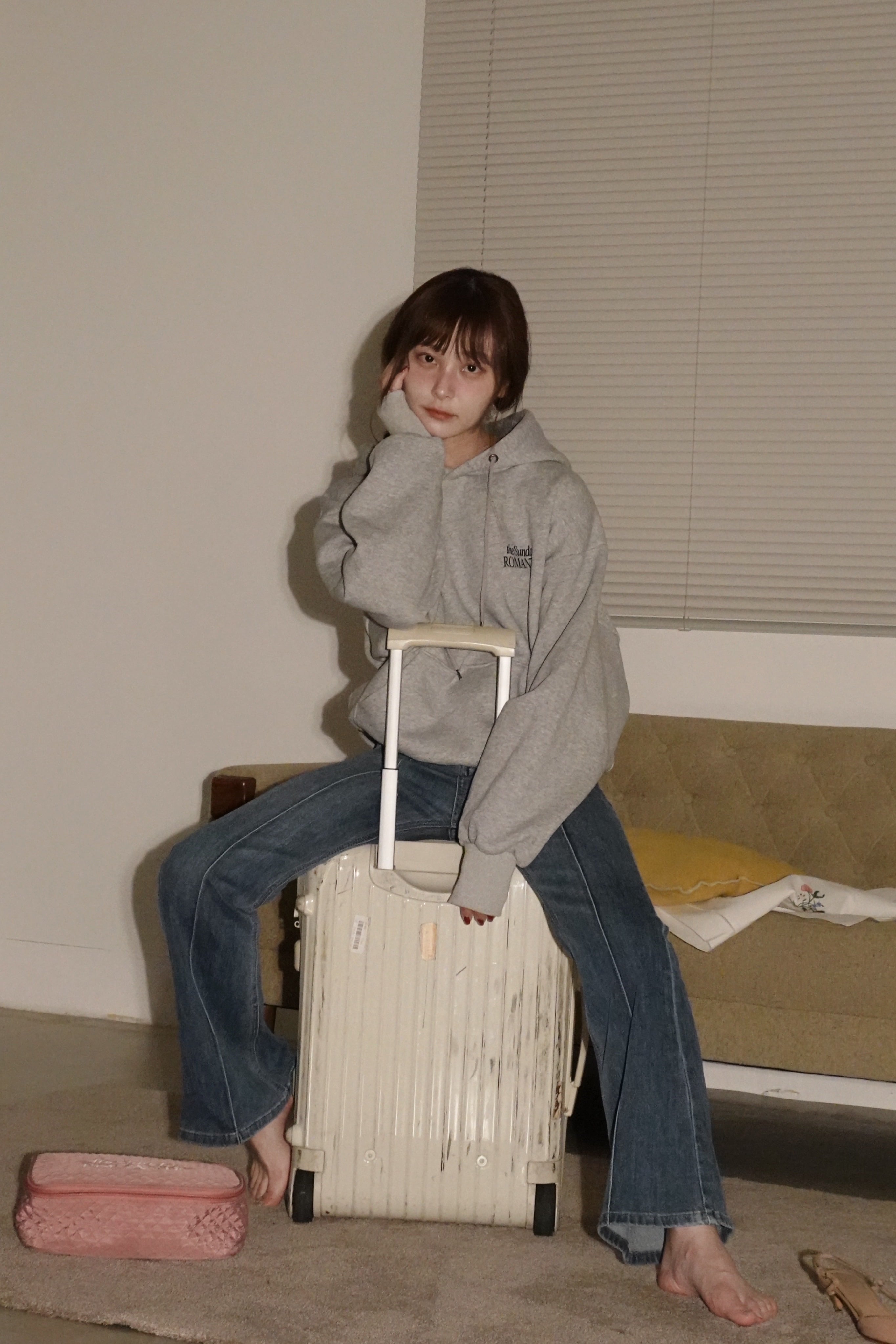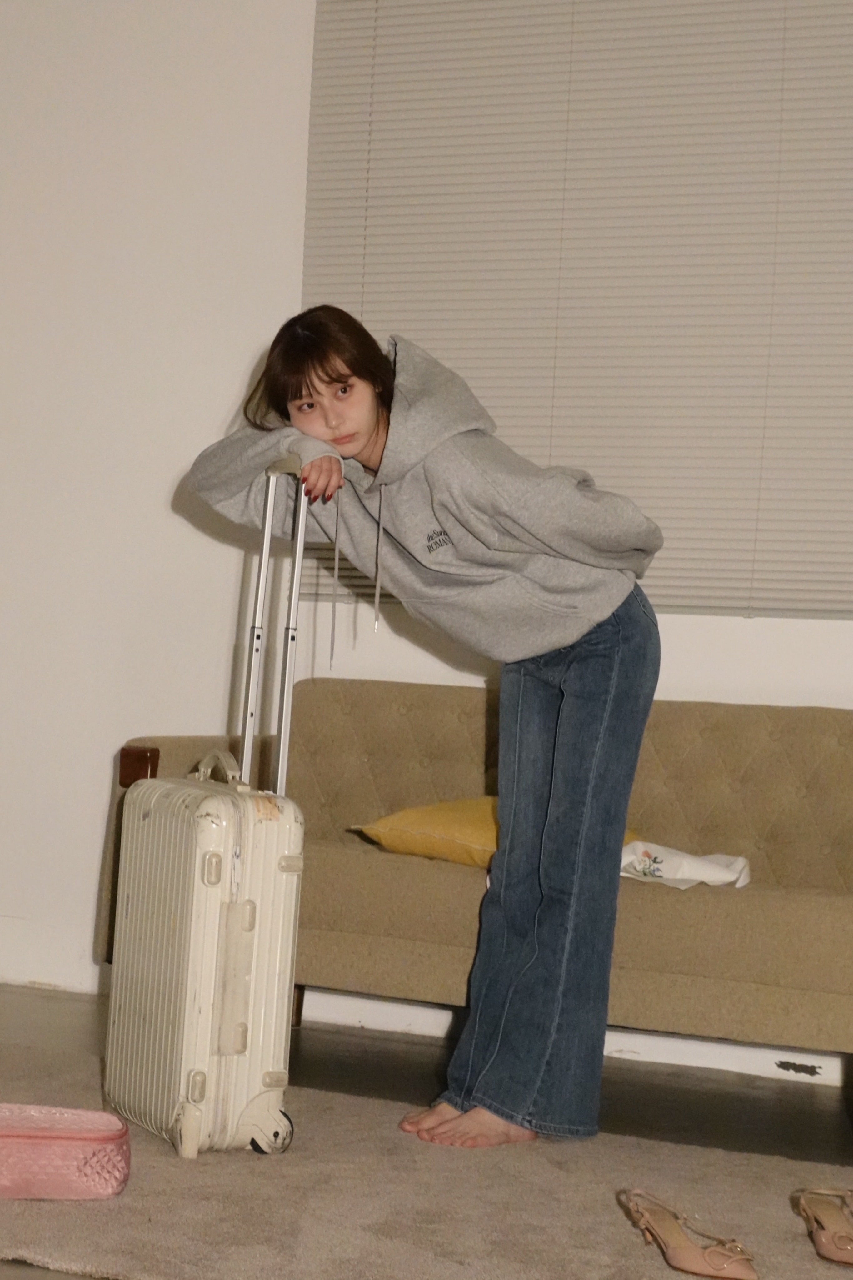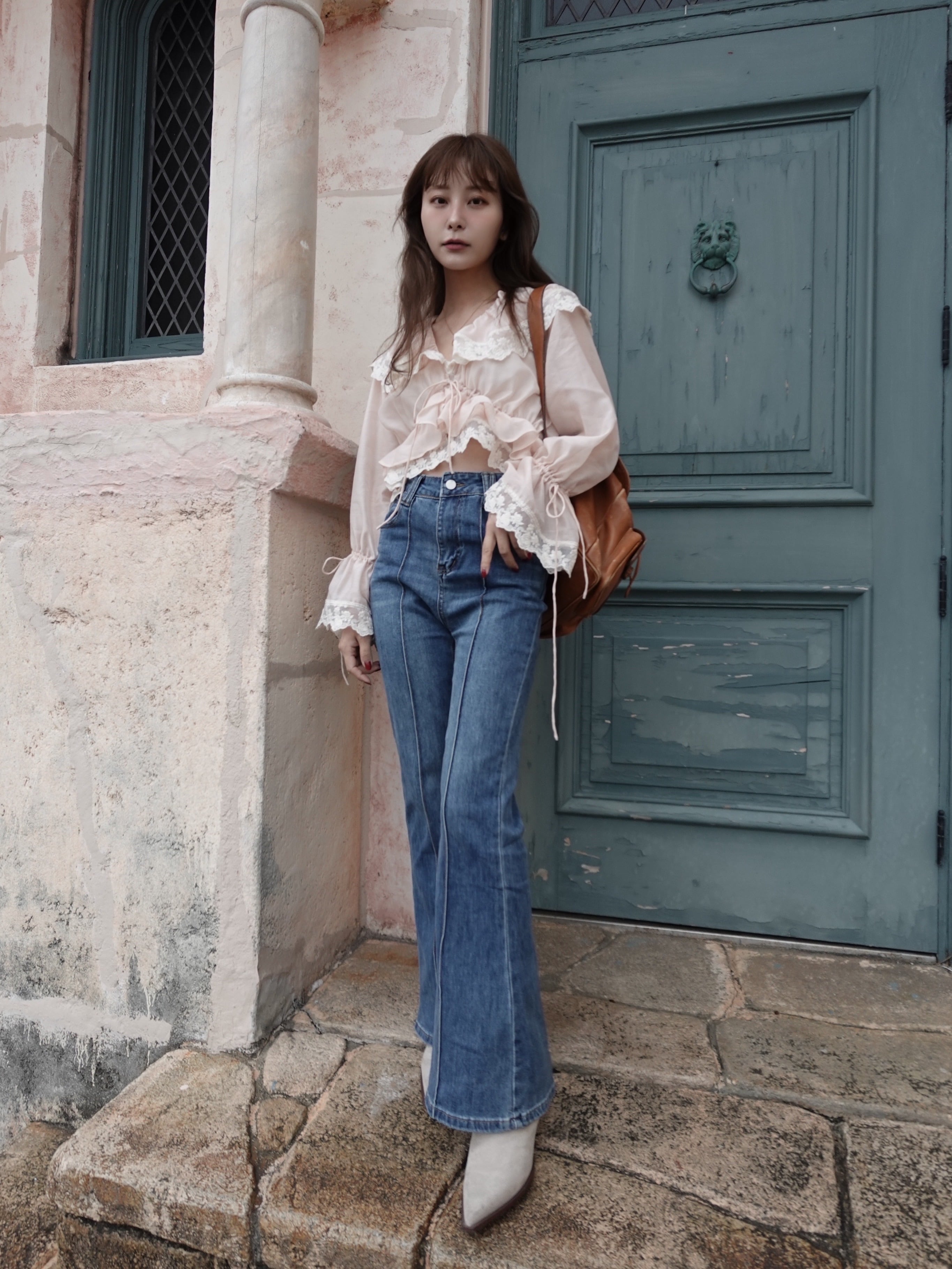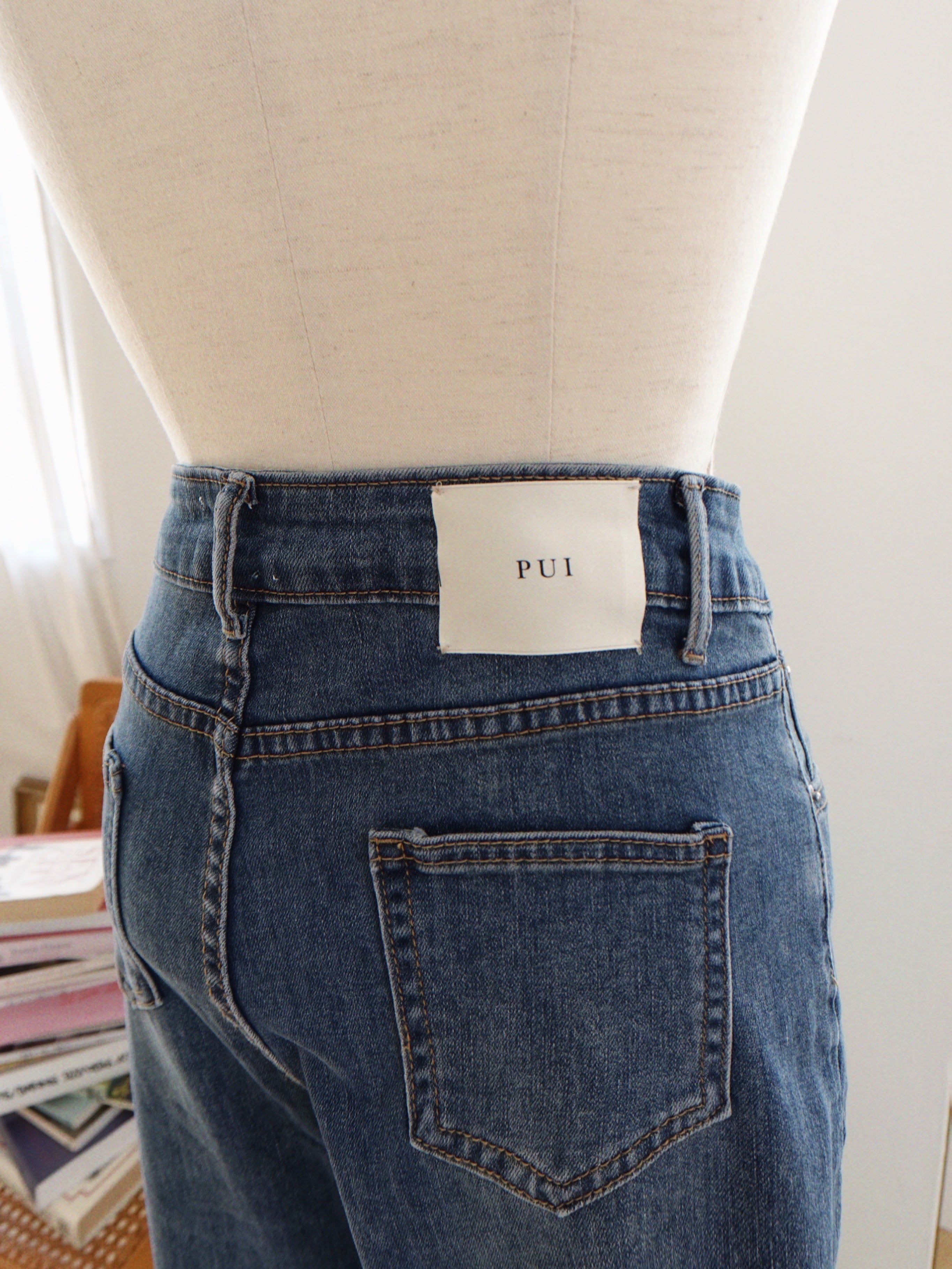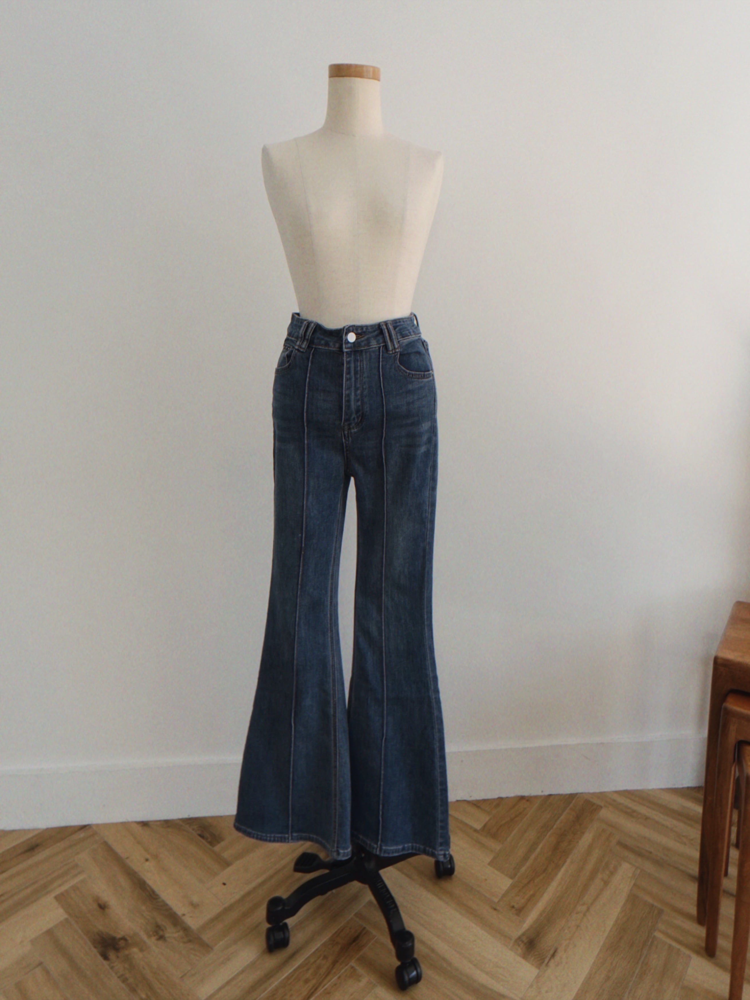 センタープレスが入ったレトロなフレアデニム。